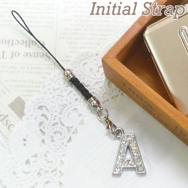 CIN-380-A/CORE/オリジナル携帯イニシャルストラップ(A)/アクセサリー/スマートフォン/雑貨/ラインストーン/アルファベット/ギフト/プレゼント