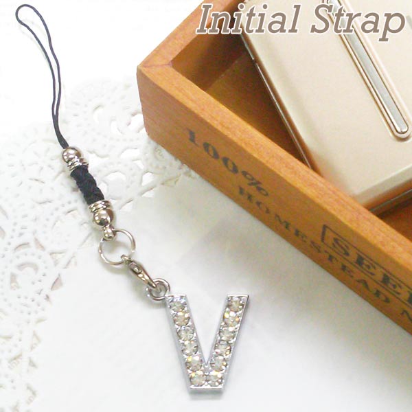 CIN-380-V/CORE/オリジナル携帯イニシャルストラップ(V)/アクセサリー/スマートフォン/雑貨/ラインストーン/アルファベット/ギフト/プレゼント